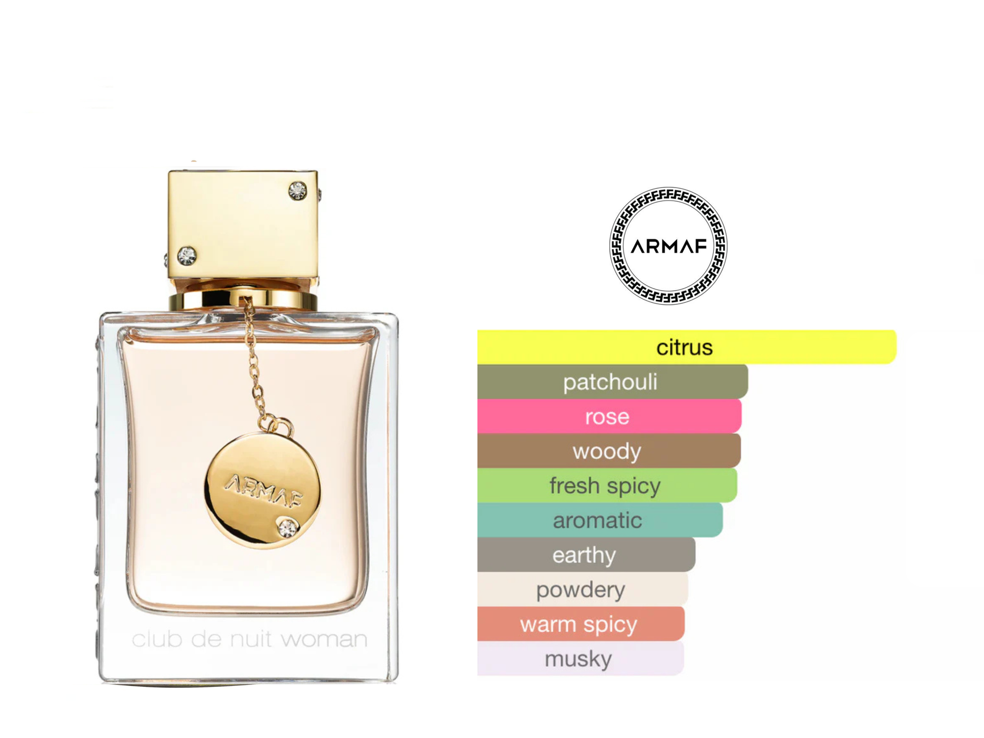 Armaf Club De Nuit for kvinner er en elegant Floral Fruity-duft som kombinerer friskhet og sødme. Den åpner med livlige noter av bergamott, grapefrukt, fersken og appelsin. Hjertet byr på en romantisk blomsterbukett av rose, jasmin, geranium og litchi. Basen av vanilje, musk, patchouli og vetiver gir en varm og varig finish. Perfekt til både hverdagsbruk og spesielle anledninger.